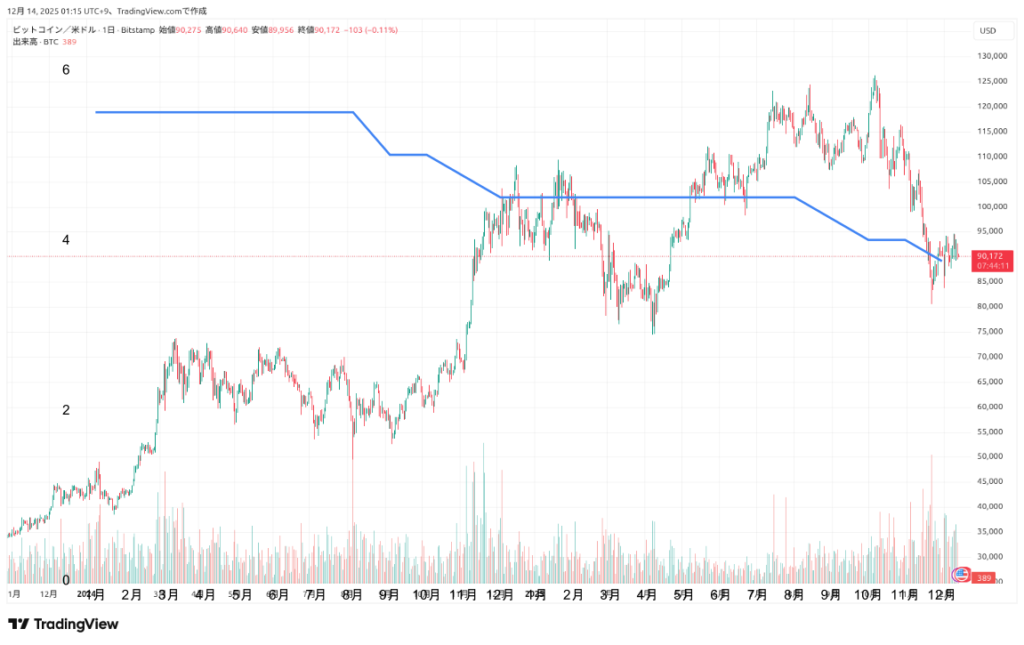 こちら、ビットコインのチャートです。